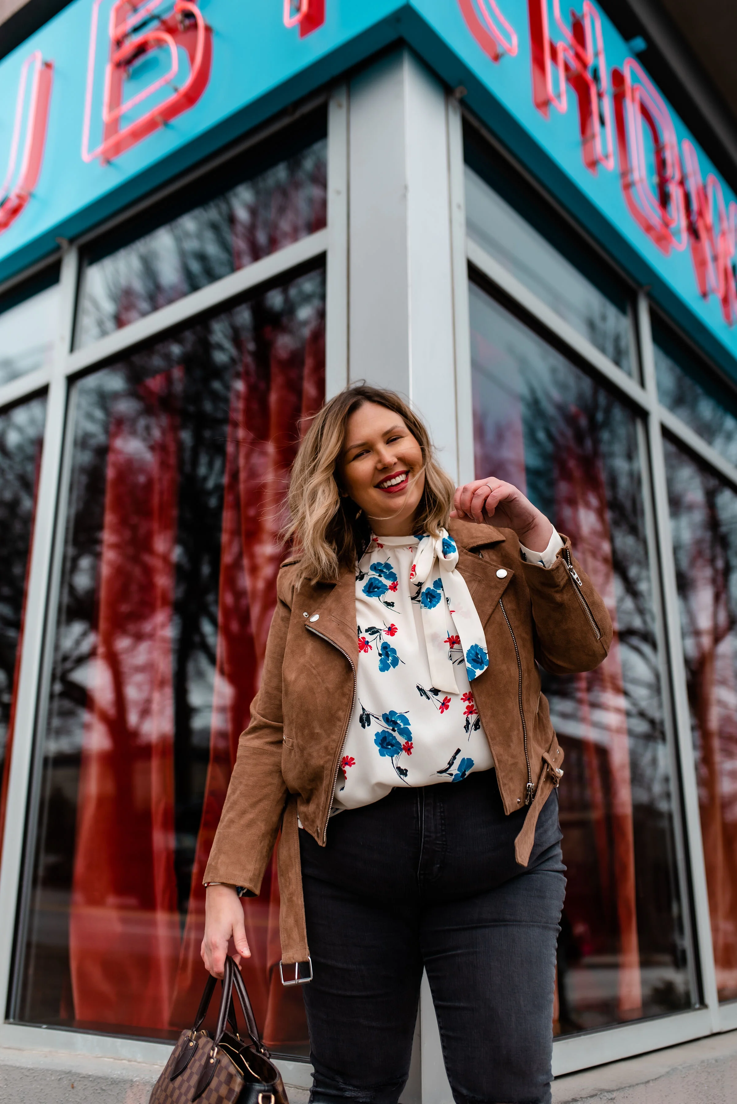 The top I am wearing is old but this ModCloth Tie-Neck Blouse would be a perfect sub or this ModCloth Embroidered Blouse which is also a tie-neck would be super cute! My absolute favorite Madewell Jeans! These Vince Camuto Combat Boots are seriously amazing! Really good support and felt great after hours of wearing. My bag is a used Louis Vuitton Normandy that I purchased from Rebag a year ago. It was my first designer bag and there hasn’t been ONE moment where I have regretted it. I have linked a similar one here!