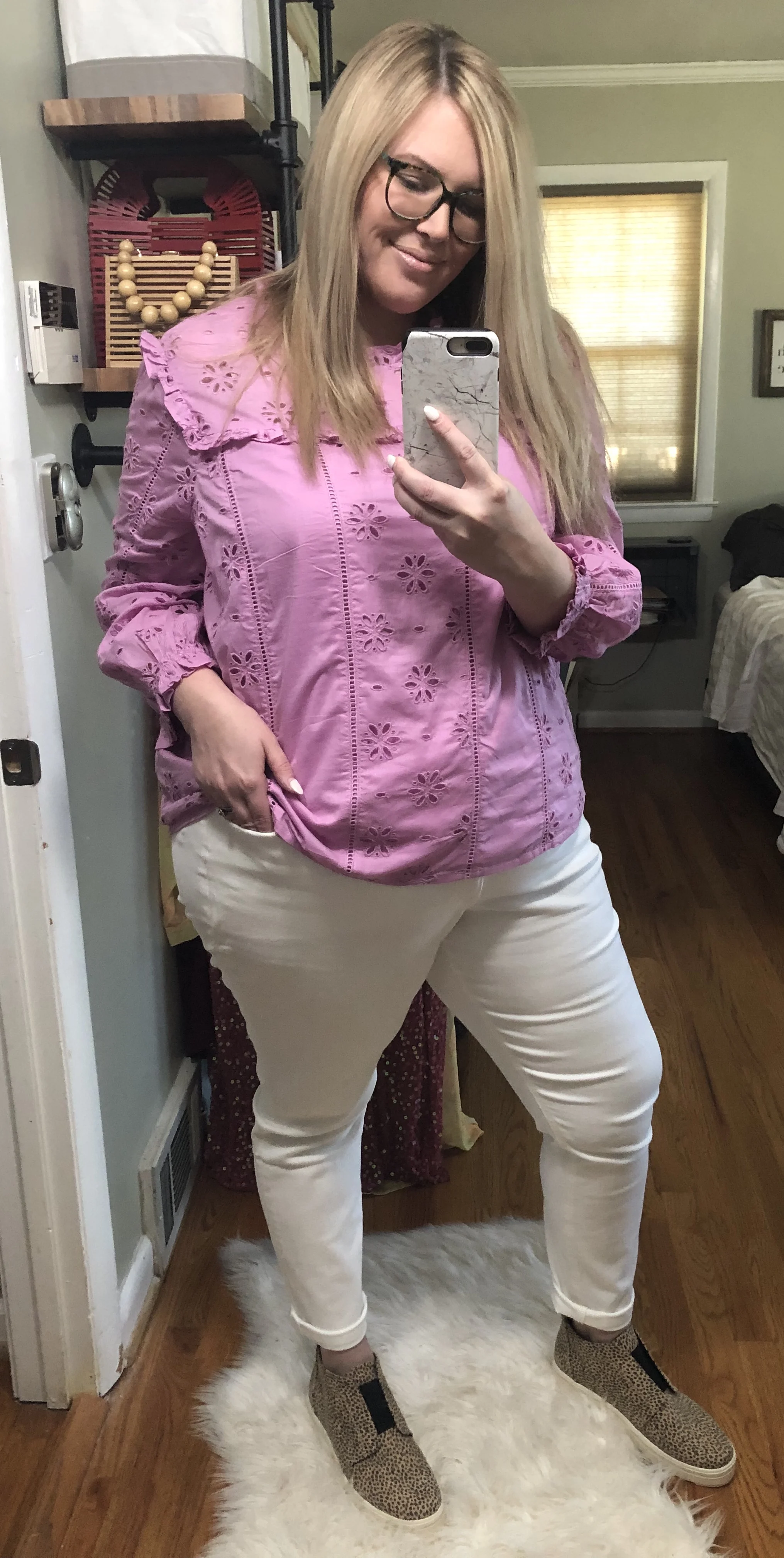 Ok, if you haven’t watched my stories you should because I cannot believe the difference in how these fit. I am obsessed and never want to take these off. Wearing a size 20. Again, let me repeat: OBSESSED. Can’t believe I feel SO good in a pair of white denim.